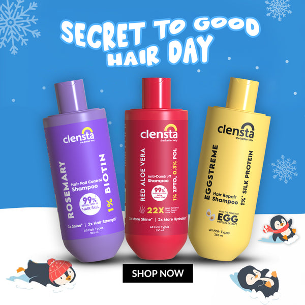 a. Eggstreme Repair Hair Shampoo - The Clensta Eggstreme Repair Hair Shampoo is created to strengthen your hair bonds, boost growth, repair damaged hair, and tame frizz. The egg protein in this shampoo increases the thickness to improve your hair quality. This shampoo helps restore dry and damaged hair and is the best remedy for hair fall. It provides intense therapy for damaged hair and revives your tired hair.