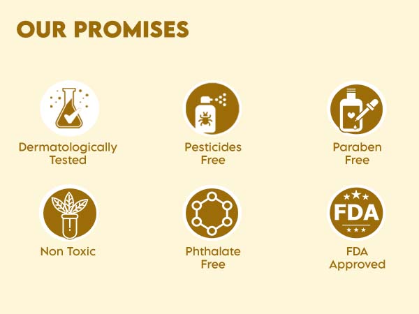 Dermatologically Tested | Approved by FDA | Paraben Free | Phthalate Free |Non Toxic | Pesticide Free