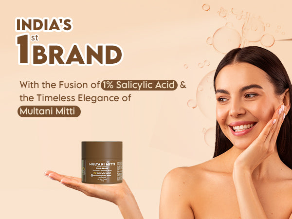 Multani Mitti Acne Control Face Mask, infused with 1% Salicylic Acid, is a potent skincare solution designed to target acne and promote clearer skin.