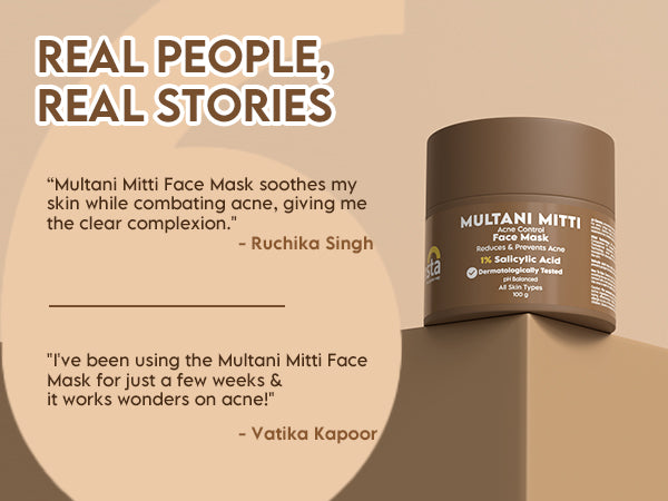 Multani Mitti Acne Control Face Mask which is ideal for acne-prone skin, provides gentle yet effective solution for achieving a smoother, blemish-free complexion.