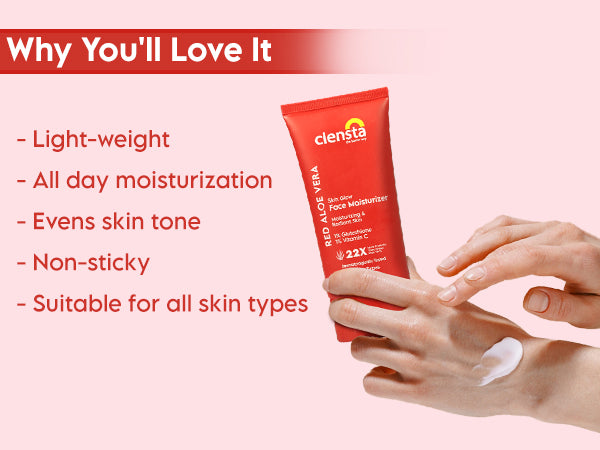- Take an adequate amount of the Red Aloe Vera Skin Glow Moisturizer.