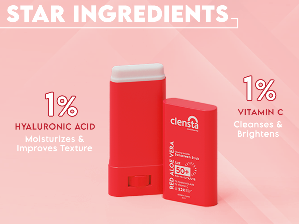 Red Aloe Vera Sun Stick With 1% Hyaluronic Acid & 1% Vitamin C Red Aloe Vera Sun Stick With 1% Hyaluronic Acid & 1% Vitamin C - 20 gm
