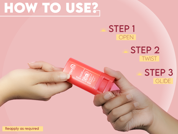 The sun stick achieves these benefits through the inclusion of red aloe vera, which relieves skin discomfort, 1% hyaluronic acid for moisturization and texture improvement, and 1% vitamin C to cleanse and brighten the skin. The lightweight formula ensures a comfortable application experience.- Open the lid of the applicator.