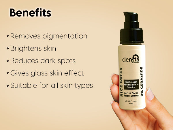 Rice Water Face Serum featuring 2% Ceramide is a lightweight, fast-absorbing serum that delivers deep hydration, strengthens your skin barrier, and enhances your natural radiance. Suitable for all skin types, it promotes a smoother, softer complexion while reducing the appearance of fine lines and redness.What It Does-