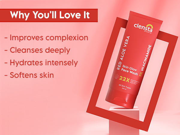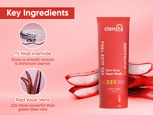 Clensta Red Aloe Vera Skin Glow Face Wash combines the potent benefits of red aloe vera and 1% niacinamide to create an effective skincare solution. Together, these ingredients work to cleanse the skin gently, promote an even complexion, and leave your face feeling refreshed, radiant, and rejuvenated. Ideal for daily use, this face wash enhances your skin’s natural glow and maintains its health and vitality.What It Does-