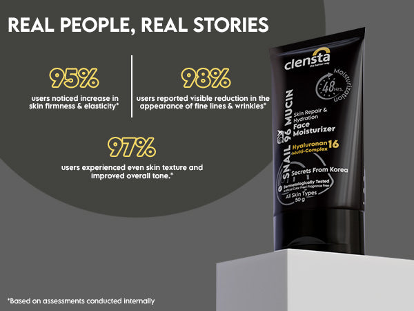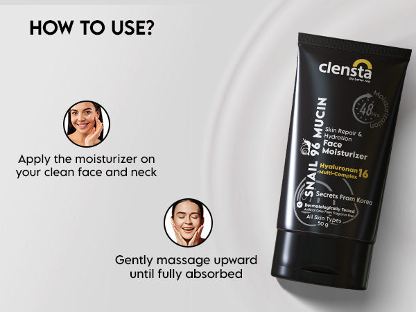 Clensta Snail Mucin Skin Face Moisturizer goes deep into the skin to repair & provide hydration.